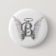 Letter B Initial Monogram with Angel Wings & Halo 6 Cm Round Badge