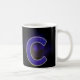 Mok with the letter C. (for example, your initial) Nice when your name starts with the C or another. Behind the letter is a grid and mysterious clouds with a light that shines on it. The letter C is filled with a flat pattern and a gray edge around it, colors blue, purple, yellow, and black.