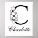 Decorate your elegant modern nursery with this beautiful black floral line art and personalised wall art! Black Letter C with name. Also ideal for girl of any age's room or replace with your last name for your living spaces. #black #zbaby