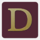 Gold capital letter D in faux gold bronze font. Metallic look achieved using highlights and shadows in yellow, brown and grey tones. Set on solid rustic red wine and can be customised with the background colour of your choice.