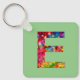 Letter "E" in decorative style with bright, colorful plants. Keyring is suitable for names Emilia, Emma, Ella, Elias, Evelyn, Elizabeth, Eleanor, Emily.