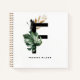 Customisable letter F monogram notebook featuring watercolor montera leaf, faux gold foil leaf and black watercolor brush accents. Personalise this tropical monogram notebook by adding your name or other details. This boho letter F monogrammed notebook will be perfect as a gift. Other letters are available.