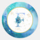 * LETTER F - Pastel Watercolor INITIAL MONOGRAM Nautical Beach colours such as Aqua Turquoise and Blue with Gold line drawing of KITE , Sea Shell, Sea Turtle and Dolphin , glitter gold foil Nautical touches decorate this Modern Trendy Gold Glitter , White and Ocean Beach Watercolor Letter Seal / Envelope Seal Sticker.
