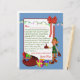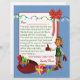 Adorable personalised letter from Santa Claus to your child, in with a template area on top for you to add your little boy or girls name. This Santa letter design, features one of Santa's elves with a sack of toys! Mr. Elf is making the thumbs up sign with his thumb... and there is a bright and colourful strand of Christmas lights, and a bright red bow on top of the letter! The background is blue with white snowflakes, in the centre of the page is a red framed white centre area with an adorable letter from Santa already written and ready for you to personalise with your child's name. Your child will be delighted to receive this adorable letter from Santa himself! For more Christmas Santa letter designs, holiday letterheads, letters to Santa, and other matching items such as envelopes, stamps, greeting cards and postcards.. please visit our store!