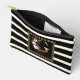 Letter G Floral Monogram Black White Gold Stripes Accessory Pouch