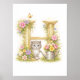 Letter H Gold Spring Nature Monogram Kitten Kids Poster