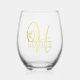 Letter H Monogram Bridesmaid Gift, Modern Elegant Stemless Wine Glass