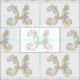 Pretty whimsical letter H hand drawing graphic in grey with shades of yellow, purple, pink on a white background. Background colour can be changed to your own colour choice if required. Personalised with your own initial this fabric reads H, ideal for customised sewing projects. Other letters available. © Original drawing and design by Sarah Trett. www.sarahtrett.com for www.mylittleeden.com