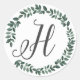 Letter H Monogram Minimalist Botanical Leaf Wreath Classic Round Sticker