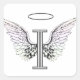 Letter I Initial Monogram with Angel Wings & Halo Square Sticker