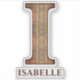 Letter I with rustic aged wood board texture. Customise with your name or message in brown matching lettering.