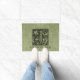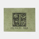 Charming decorative letter J initial monogram calligraphy style typography first letter in black over vintage sage green book lining with off white Ginkgo biloba leaves.