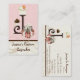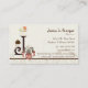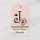 Letter J Monogram Custom Business Cards for your cupcake or other bakery business. Sweet and Contemporary! This business card design features two hand painted cupcakes and a two tiered fondant covered cake in chocolate brown and soft pink and cream. The Monogram Letter is in “chocolate” and will appeal sweet lovers everywhere! The background is a soft shell pink with latte coloured swirls over a cream crackle finish and a chocolate brown stripe. This design is perfect for your wedding shower, bridal shower or for businesses such as wedding coordinators, event planners, bakeries, bake shops, custom wedding cake designers, speciality cupcake services and more. Every letter of the alphabet is available, if you don't see what you want just email us!
