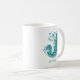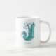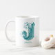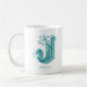 Customisable white coffee mug featuring the letter J in unique teal coloured typography. Add your name using the personalisation feature.