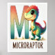 This 8.5x11 poster for the letter “M” features a mighty-cute Microraptor, continuing the dinosaur alphabet series with bold colour and charm. The letter “M” fades from warm coral to cool teal, with a subtle scaled texture that adds depth and interest. Standing proudly beside it, the Microraptor flashes a playful smile, with wide eyes, a yellow-orange belly, and a teal body covered in vibrant red and green spots. Its colourful head and tail give it an extra pop of personality. The name “MICRORAPTOR” is clearly printed below in bold brown letters, making it easy for kids to link the letter with the dino. This poster adds energy and fun to any educational setting, perfect for sparking a love of letters and dinosaurs.