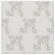 Pretty whimsical initial M hand drawn then converted to graphic letter art in grey with shades of yellow, purple, pink on a white background. Background colour can be changed to your own colour choice if required. Personalised with your own initial this fabric reads M, ideal for customised sewing projects. Other letters available. © Original drawing and design by Sarah Trett. www.sarahtrett.com for www.mylittleeden.com
