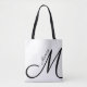 LETTER M - Monica. Change the text easily! A simple and stylish monogrammed black and white tote bag. Modern style shopper with your NAME.