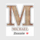 Letter M with rustic aged wood board texture. Customise with your name or message in brown matching lettering.