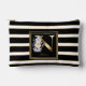 Letter N Floral Monogram Black White Gold Stripes Accessory Pouch