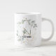Letter N Initial Monogram Greenery Wreath w Gold Large Coffee Mug