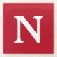 This glass drink coaster features a big letter "N" in white on a bright red background.