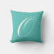 Personalised monogram pillow with a classic script letter O on a Turquoise background. Made in the USA from machine washable cotton or polyester. Perfect for Odette, Olga, Olive, Olivia, Ophelia, Ophelie or anyone else who's name begins with an Initial O.