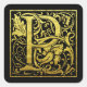 Charming decorative letter P initial monogram, calligraphy style typography, first letter in black and faux gold (shades of yellow with highlights and shadows to simulate metallic gold leaf gilding texture). This product can be customised with any colour and gold.