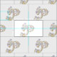 Pretty whimsical letter P hand drawing graphic in grey with shades of yellow, purple, pink on a white background. Background colour can be changed to your own colour choice if required. Personalised with your own initial this fabric reads P, ideal for customised sewing projects. Other letters available. © Original drawing and design by Sarah Trett. www.sarahtrett.com for www.mylittleeden.com
