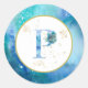 * Initial LETTER P monogram - Pastel Beach Watercolor INITIAL MONOGRAM Nautical Beach colours such as Aqua Turquoise and Blue with Gold line drawing of Sea Shell, Sea Turtle , and GOLD OUTLINE of a SEA HORSE , SEAHORSE and more Beach Nautical touches decorate this Modern Trendy Gold Glitter , White and Ocean Beach Watercolor Letter Seal / Envelope Seal Sticker.