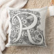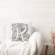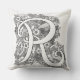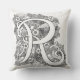 Monogram letter R doodled hand drawn pillow. Ideal for colouring in, embroidering or just kept as a outline mono letter R design. Background colour can be changed if required currently white. © Original ink drawing featuring, items beginning with R roses, rainbow, rabbits, rockets and raspberries letter art and design by Sarah Trett. www.sarahtrett.com for www.mylittleeden.com