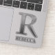 Letter R Two-Tone Silver Gray and Name Sticker