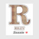 Letter R with rustic aged wood board texture. Customize with your name or message in brown matching lettering.