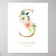 Letter S Blush Floral Monogram Gold Foil Nursery Poster