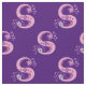 Pretty whimsical initial S drawing converted to graphic letter art in shades of purple and pink on a dark purple background. Background colour can be changed to your own colour choice if required. Personalised with your own initial this fabric reads S, ideal for customised sewing projects. Other letters available. © Original drawing and design by Sarah Trett. www.sarahtrett.com for www.mylittleeden.com