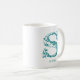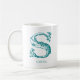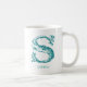 Customisable white coffee mug featuring the letter S in unique teal coloured typography. Add your name using the personalisation feature.