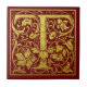 Letter T First Letter Faux Gold Red Tile