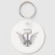 Letter T Initial Monogram with Angel Wings & Halo Key Ring