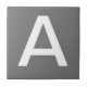 Ceramic letter tiles. Upper or lower case letter tiles. You customise with the letter or letters you need for your ceramic tile or mosaic sign. Letter tile for weather proof signs, house numbers. White on grey background.