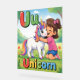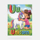 Cute and colorful alphabet poster featuring the letter U with a friendly unicorn illustration.
