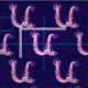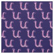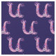 Pretty whimsical letter U hand drawn graphic in shades of purple and pink on a dark blue background. Background colour can be changed to your own colour choice if required currently dark blue. Personalised with your own initial this fabric reads U, ideal for customised sewing projects. Other letters available. © Original drawing and design by Sarah Trett. www.sarahtrett.com for www.mylittleeden.com