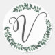 Letter V Monogram Minimalist Botanical Leaf Wreath Classic Round Sticker
