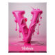 Letter V, Monogram of initial V. Capital Letter. Hot pink, dripping goo, floating. This image features a letter “V" in a vibrant shade of pink, with a visual effect that simulates paint or liquid melting. The letter appears to be made of dripping goo, creating an interesting play of textures and shapes. The background is light pink, which further highlights the letter and its three-dimensional effect.