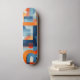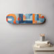 Letterforms in blue and orange skateboard