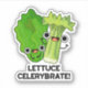 Lettuce Celerybrate Funny Veggie Pun features a cute couple of lettuce and celery celbrating. Perfect pun gift for family and friends who love cute veggie puns.