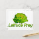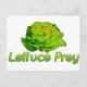 Text reads "Lettuce Prey" in a green shiny font with open lettuce leaves above it. Perfect for vegans/vegetarians, salad lovers, and anyone else who enjoys a good pun.
