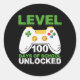 Level 100 Days Of School Unlocked Gamer Video Game Classic Round Sticker