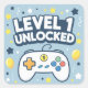 Level 1 Unlocked – First Birthday Gaming Square Sticker