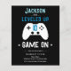 Simple minimalist gaming controller gamer birthday invitation. You've reach level any age! All text is custom. Fun simple neon lines on the back of card.