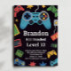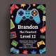 Level up the fun with this cool kids gaming birthday party invitation! Featuring a watercolor video game controller and bold modern lettering, this design is perfect for gamers who love to play and celebrate. Easily personalise it with your child’s name, age, party date, and details to create an invitation that’s ready to power up the excitement. Great for boys or girls who enjoy console games, online fun, or arcade-style parties!