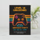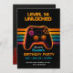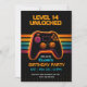 This Level Up birthday invitation features a bold neon game controller design with a retro gaming vibe, perfect for kids, teens, and gamers of all ages.